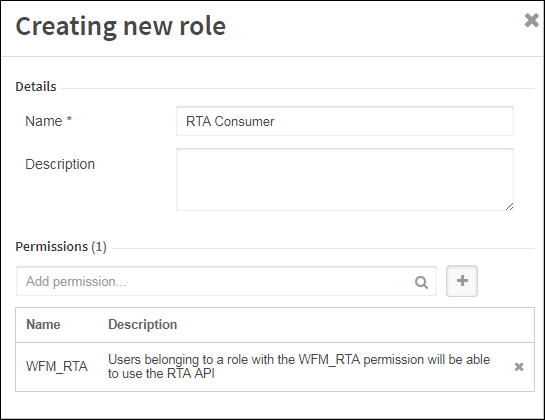 - From the Permissions list, select WFM RTA.